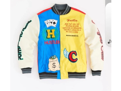 Scarface Money,Power,Respect Varsity Jacket Multicolor Custom Chenille Patch Embroidery Details Ribbed Cuffs Collarless Button Closure Two Pockets Cotton Flannel Outter Shell Size XL