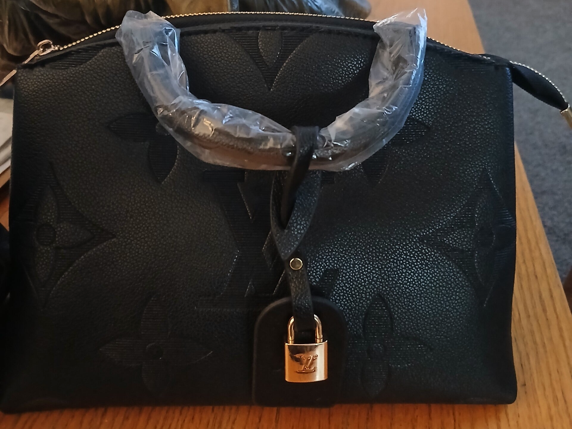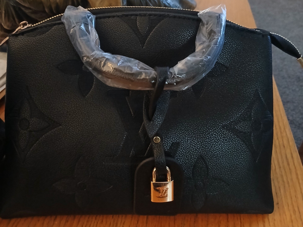 Designer LV Black Embossed Leather Handbag