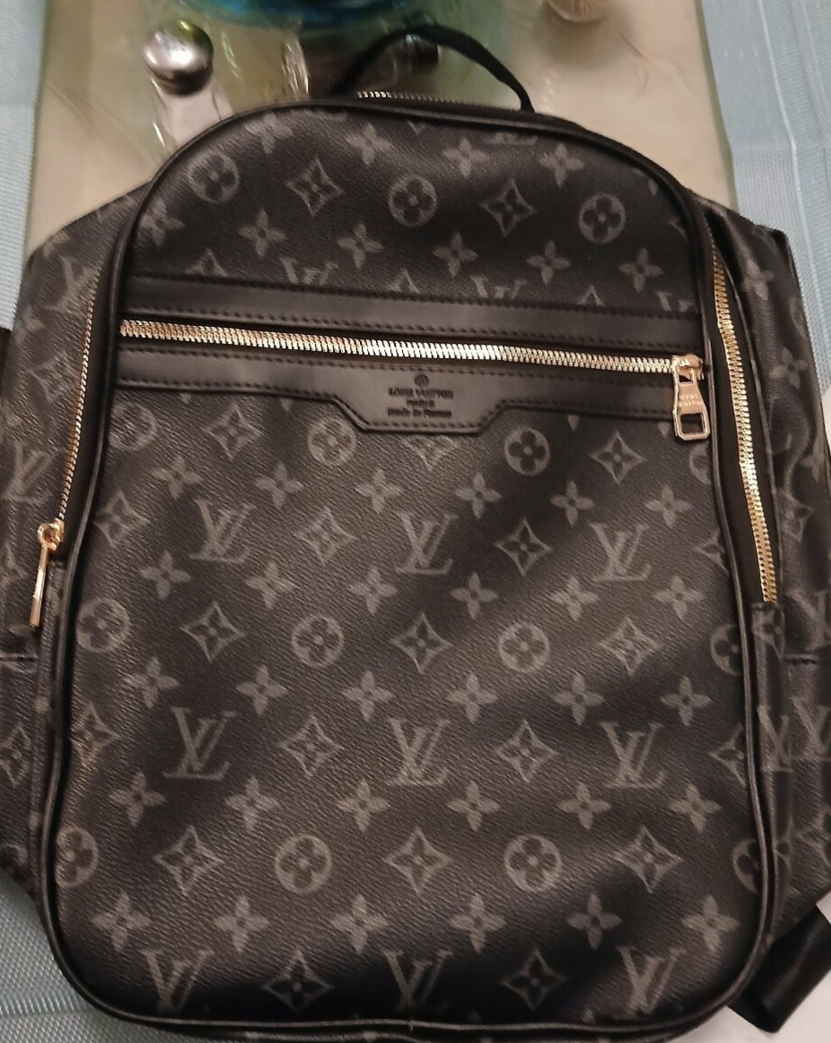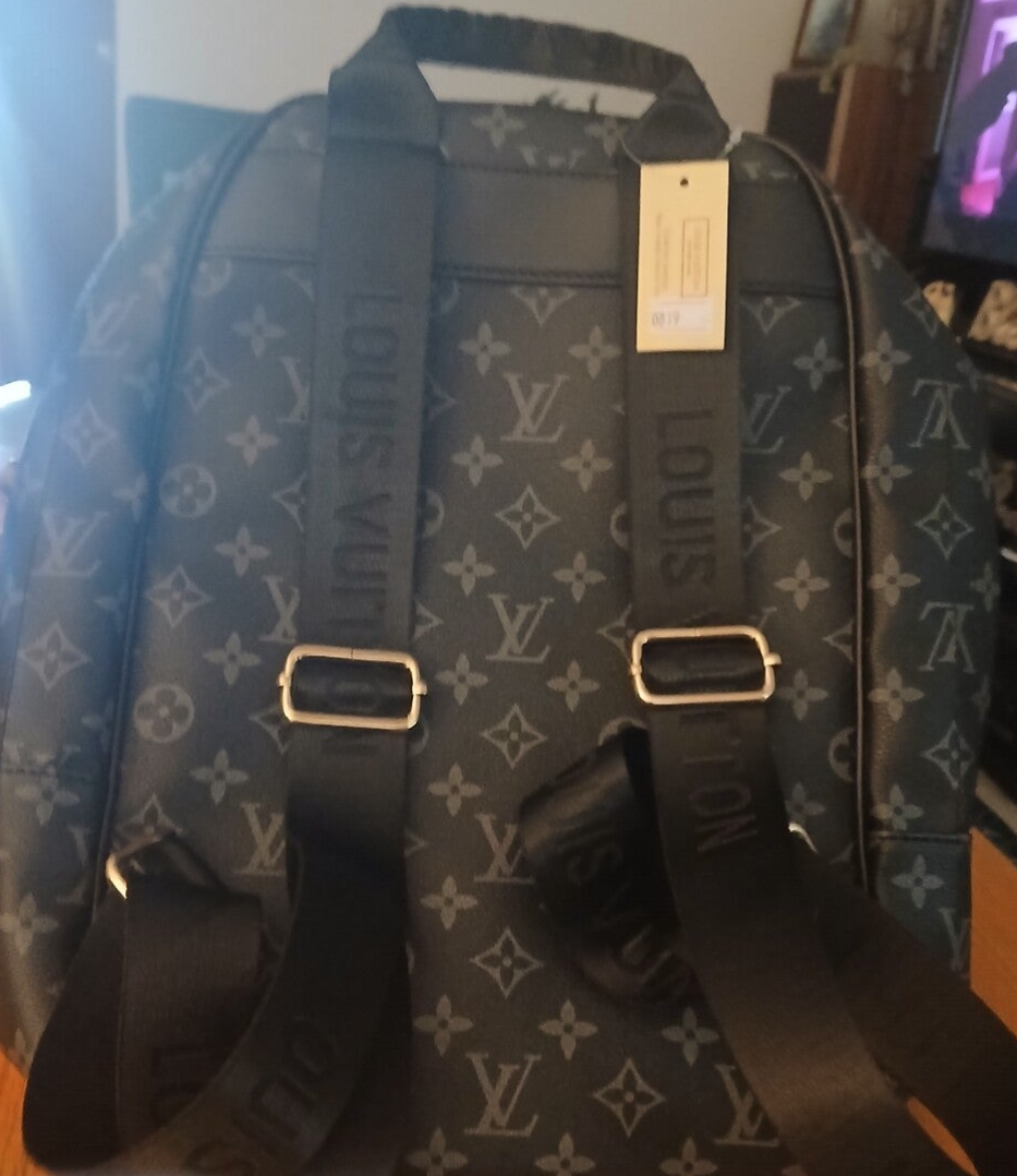 LV Black Monogram Backpack Leather Great 2 Zip Storage Compartments Perfect School,Books ,Laptops And More
