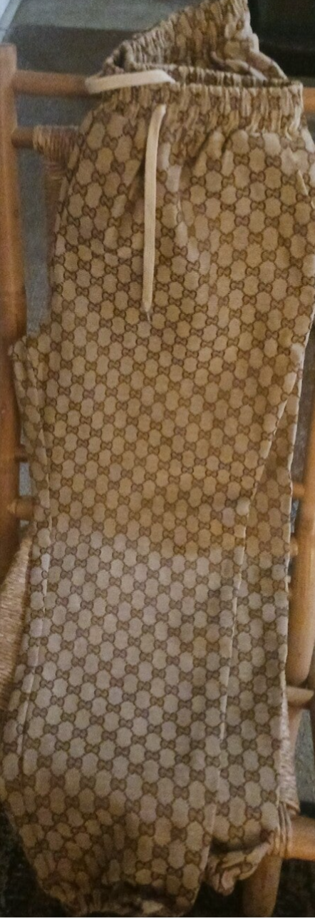 Designer GG Trackpants In Two Different Colors We Tan & Brown and Green & Black Both Come In Size 2XL